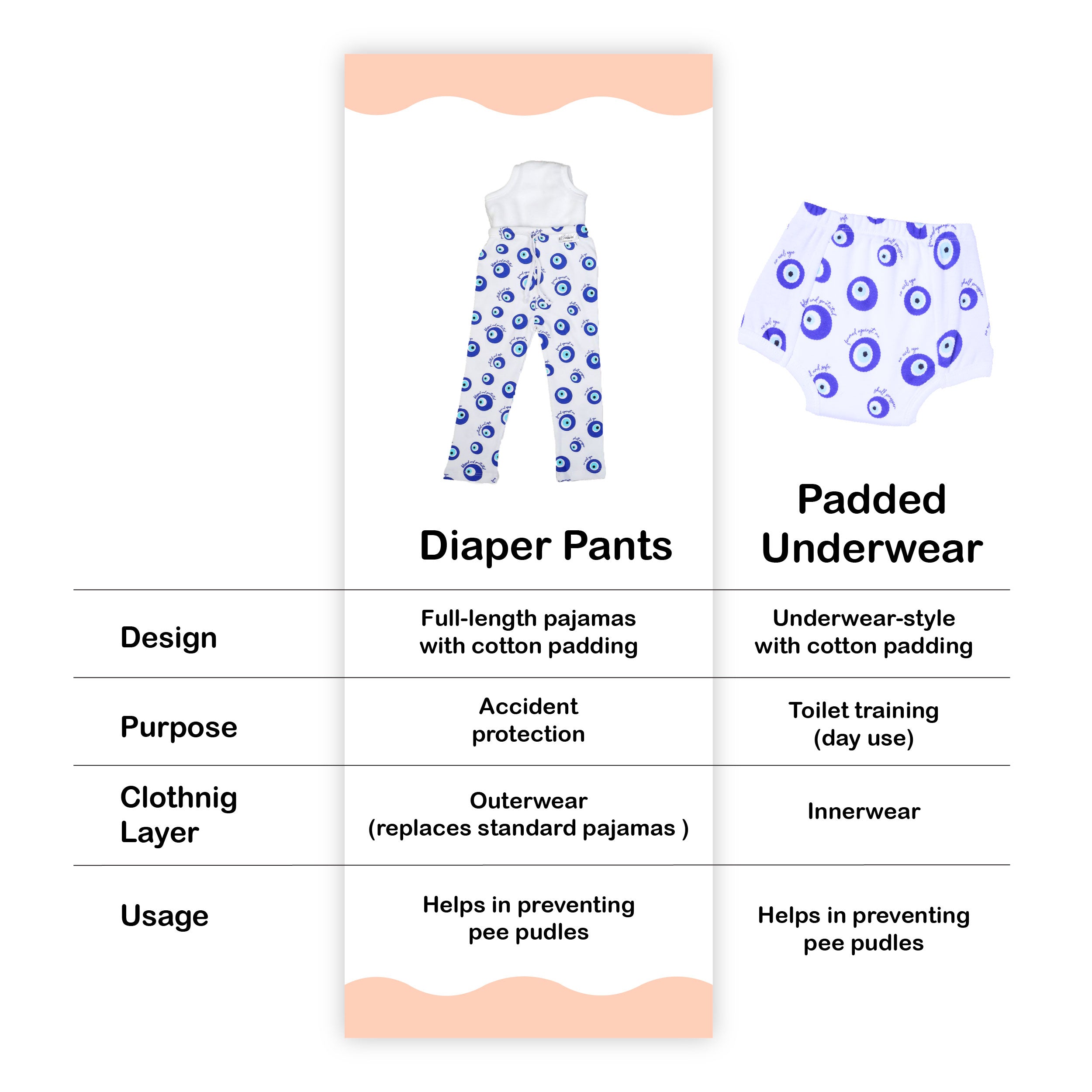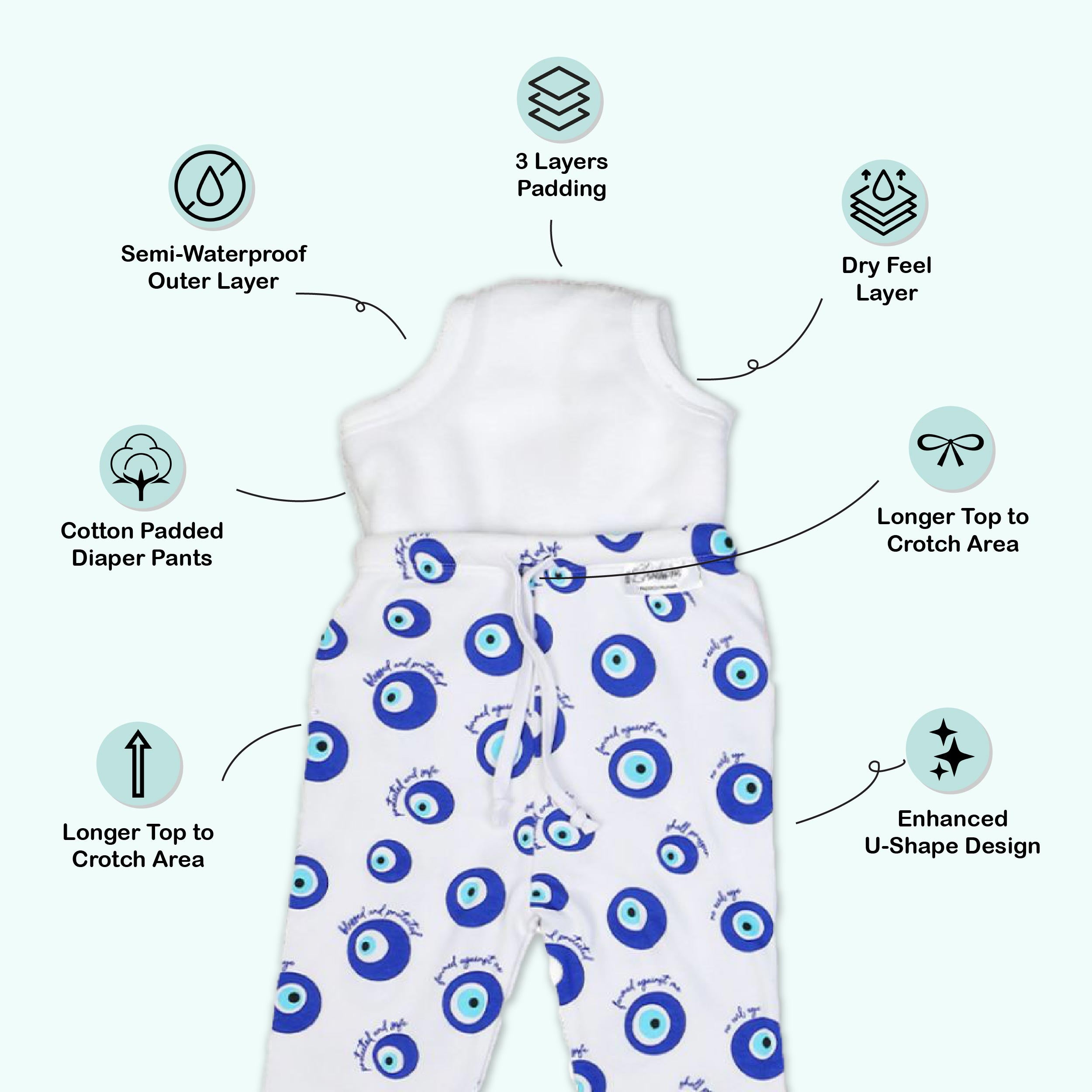 Snugkins Diaper Pant Potty Training Pajamas for Boys & Girls 100% Cotton - Pack of 1 - Evil Eye