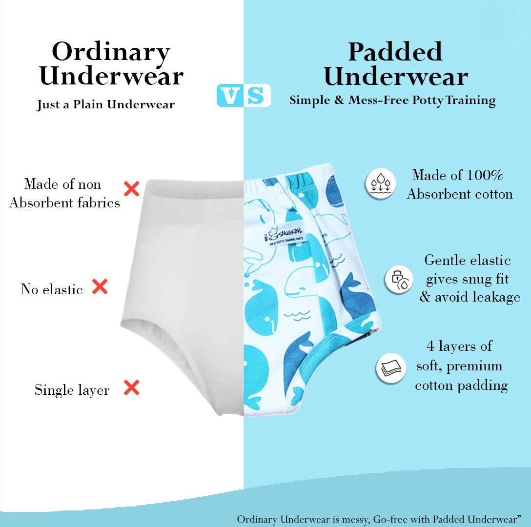 We get it. Potty training is not an easy phase for your toddler. But we are here for you with 4 layers of soft, absorbent cotton we call the Snug Pants. Lined with waterproof TPU laminate to help keep clothes dry, Snug Potty Training Pant is designed to help catch small accidents while training.