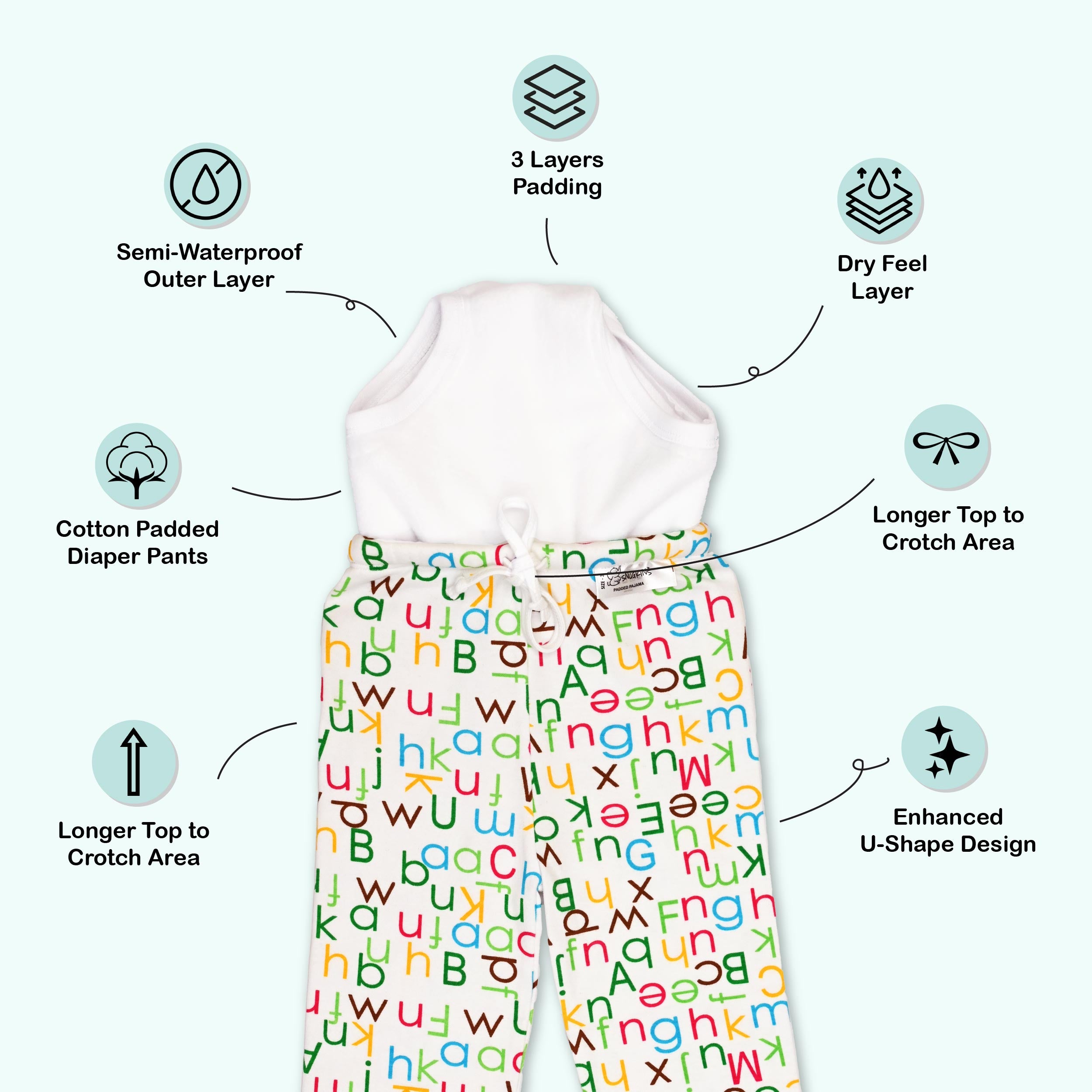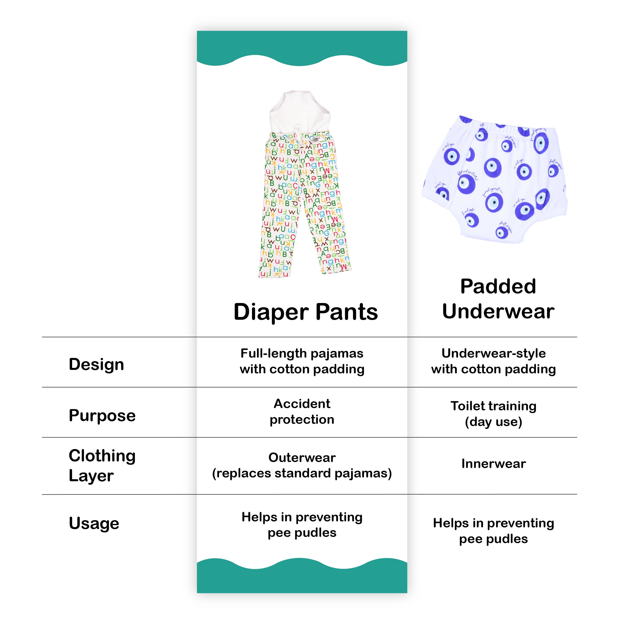 The training pants are designed in a way that is perfect for potty training and for your baby to wear training pants during the day and use diapers during the night.