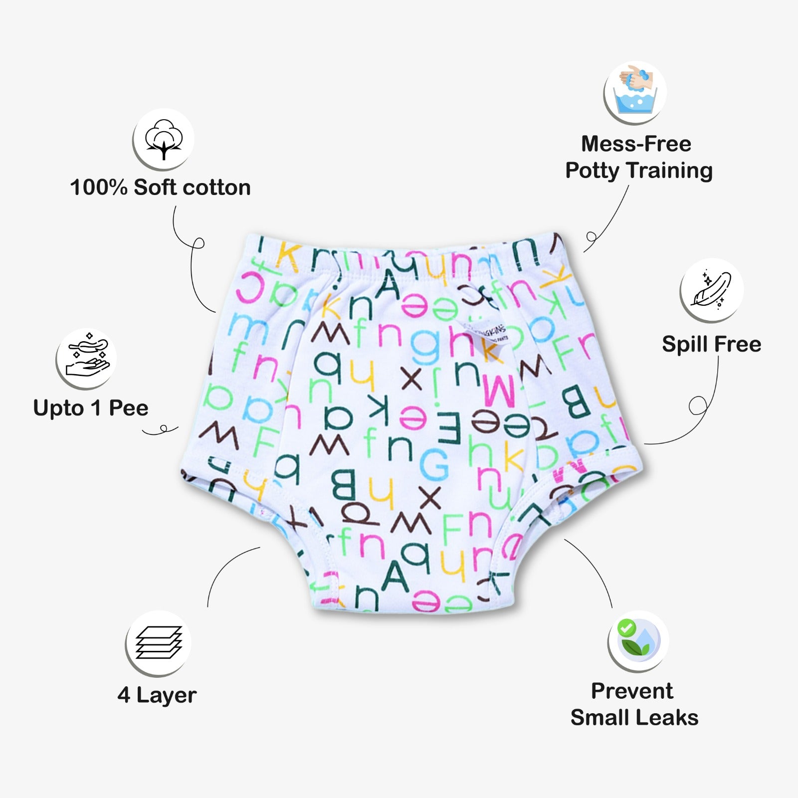 We get it. Potty training is not an easy phase for your toddler. But we are here for you with 4 layers of soft, absorbent cotton we call the Snug Pants. Lined with waterproof TPU laminate to help keep clothes dry, Snug Potty Training Pant is designed to help catch small accidents while training.